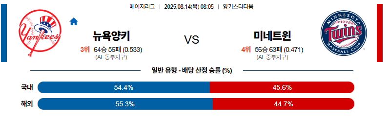 뉴욕양키스 대 미네소타 MLB 08월14일 맞대결 생중계, 스포츠중계, 스포츠분석
