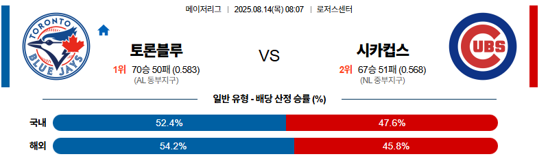 토론토 대 시카고컵스 MLB 08월14일 맞대결 생중계, 스포츠중계, 스포츠분석