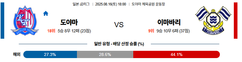 도야마 대 이마바리 J리그2 08월16일 맞대결 생중계, 스포츠중계, 스포츠분석
