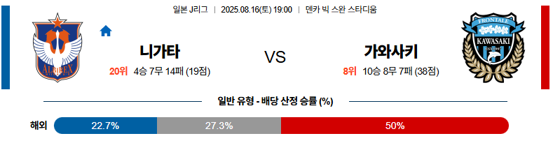 니가타 대 가와사키 J리그1 08월16일 맞대결 생중계, 스포츠중계, 스포츠분석