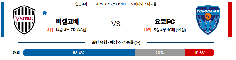 비셀고베 대 요코하마FC J리그1 08월16일 맞대결 생중계, 스포츠중계, 스포츠분석