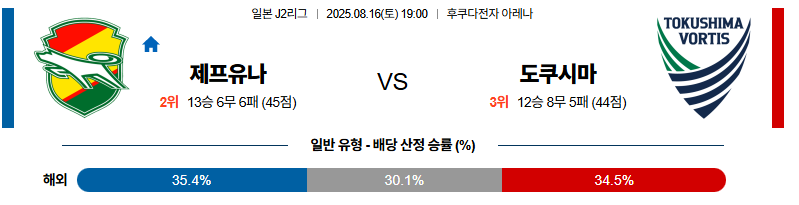 제프유나이티드 대 도쿠시마 J리그2 08월16일 맞대결 생중계, 스포츠중계, 스포츠분석