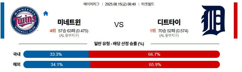 미네소타 대 디트로이트 MLB 08월15일 맞대결 생중계, 스포츠중계, 스포츠분석