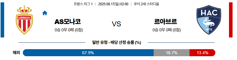 AS모나코 대 르아브르 리그앙 08월17일 맞대결 생중계, 스포츠중계, 스포츠분석