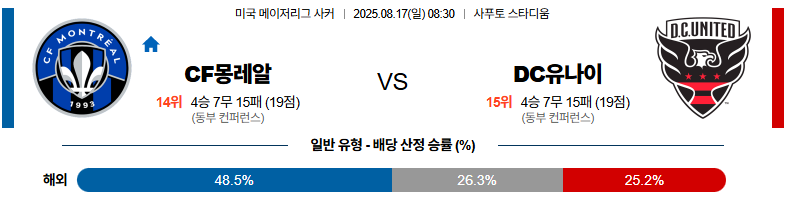 몽레알 대 DC유나이티드 메이저리그사커 08월17일 맞대결 생중계, 스포츠중계, 스포츠분석