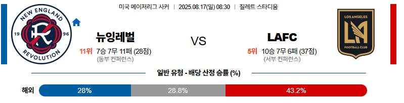 뉴잉글랜드 대 LAFC 메이저리그사커 08월17일 맞대결 생중계, 스포츠중계, 스포츠분석