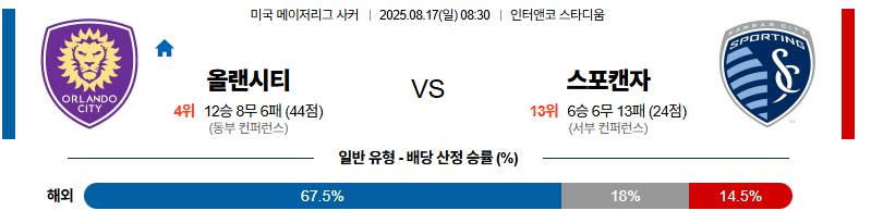 올랜도시티 대 켄자스시티 메이저리그사커 08월17일 맞대결 생중계, 스포츠중계, 스포츠분석