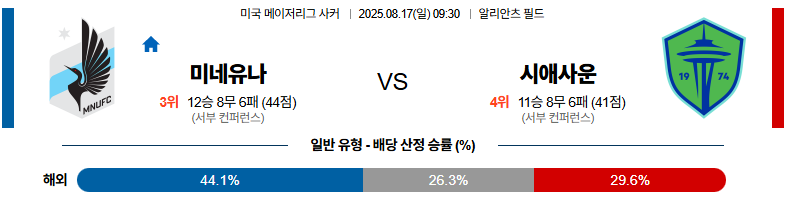 미네소타 대 시애틀 메이저리그사커 08월17일 맞대결 생중계, 스포츠중계, 스포츠분석