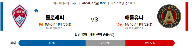 콜로라도 대 애틀랜타 메이저리그사커 08월17일 맞대결 생중계, 스포츠중계, 스포츠분석