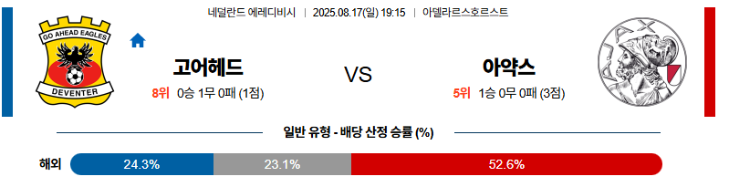 고어헤드 대 아약스 에레디비지 08월17일 맞대결 생중계, 스포츠중계, 스포츠분석