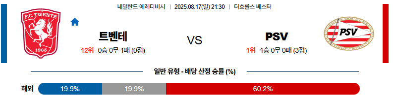 트벤테 대 아인트호벤 에레디비지 08월17일 맞대결 생중계, 스포츠중계, 스포츠분석