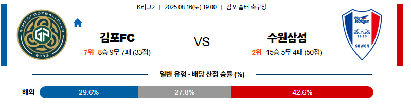 김포 대 수원삼성 K리그2 08월16일 맞대결 생중계, 스포츠중계, 스포츠분석