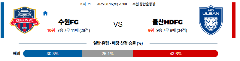 수원FC 대 울산 K리그1 08월16일 맞대결 생중계, 스포츠중계, 스포츠분석
