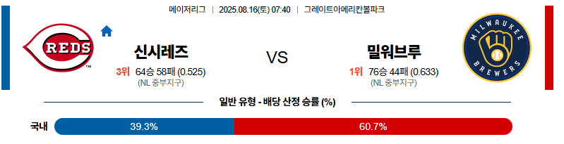 신시내티 대 밀워키 MLB 08월16일 맞대결 생중계, 스포츠중계, 스포츠분석