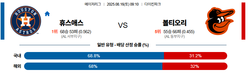 휴스턴 대 볼티모어 MLB 08월16일 맞대결 생중계, 스포츠중계, 스포츠분석
