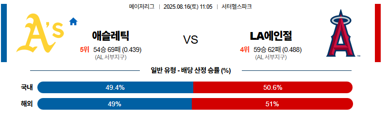 애슬레틱스 대 LA에인절스 MLB 08월16일 맞대결 생중계, 스포츠중계, 스포츠분석