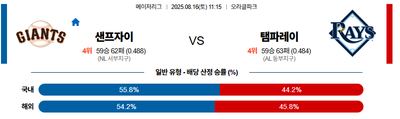 샌프란시스코 대 탬파베이 MLB 08월16일 맞대결 생중계, 스포츠중계, 스포츠분석