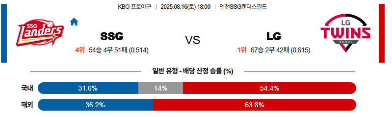 SSG 대 LG KBO 08월16일 맞대결 생중계, 스포츠중계, 스포츠분석