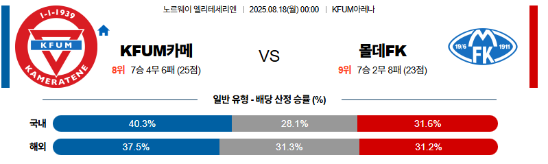 KFUM오슬로 대 몰데 노르웨이1부 08월18일 맞대결 생중계, 스포츠중계, 스포츠분석