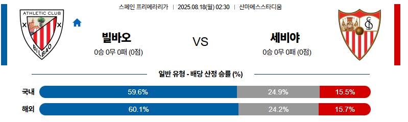 빌바오 대 세비야 라리가 08월18일 맞대결 생중계, 스포츠중계, 스포츠분석