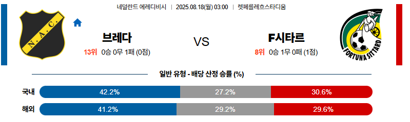 브레다 대 시타르트 에레디비지 08월18일 맞대결 생중계, 스포츠중계, 스포츠분석