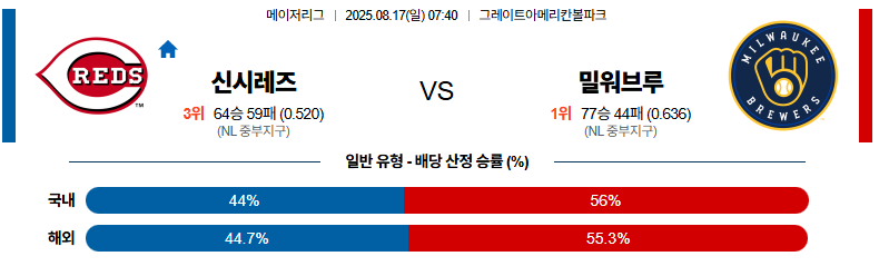 신시내티 대 밀워키 MLB 08월17일 맞대결 생중계, 스포츠중계, 스포츠분석
