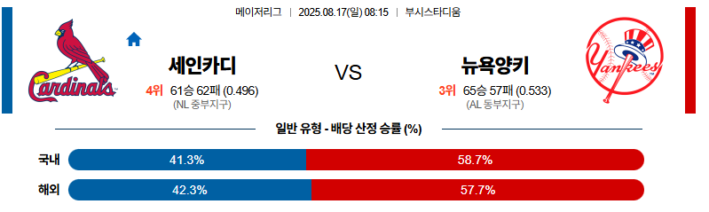 세인트루이스 대 뉴욕양키스 MLB 08월17일 맞대결 생중계, 스포츠중계, 스포츠분석