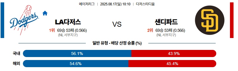 LA다저스 대 샌디에이고 MLB 08월17일 맞대결 생중계, 스포츠중계, 스포츠분석