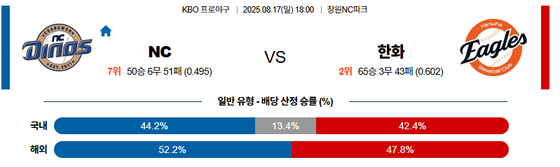 NC 대 한화 KBO 08월17일 맞대결 생중계, 스포츠중계, 스포츠분석