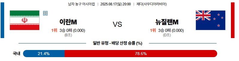 이란 대 뉴질랜드 아시안컵 08월17일 맞대결 생중계, 스포츠중계, 스포츠분석