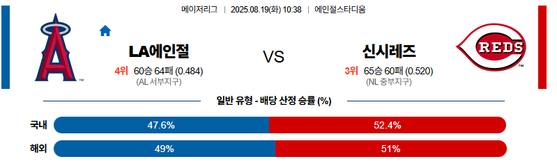 LA에인절스 대 신시내티 MLB 08월19일 맞대결 생중계, 스포츠중계, 스포츠분석