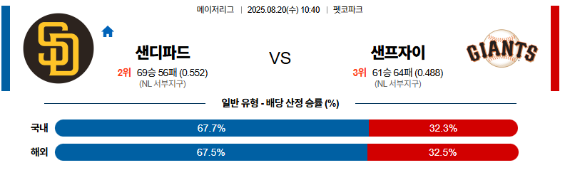 샌디에이고 대 샌프란시스코 MLB 08월20일 맞대결 생중계, 스포츠중계, 스포츠분석