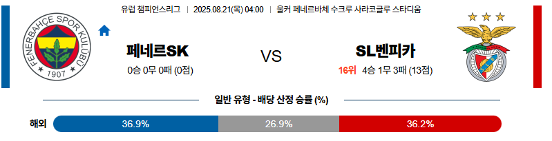 페네르바체 대 벤피카 UEFA챔피언스리그 08월21일 맞대결 생중계, 스포츠중계, 스포츠분석