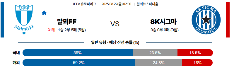 말뫼 대 올로모우츠 UEFA유로파리그 08월22일 맞대결 생중계, 스포츠중계, 스포츠분석