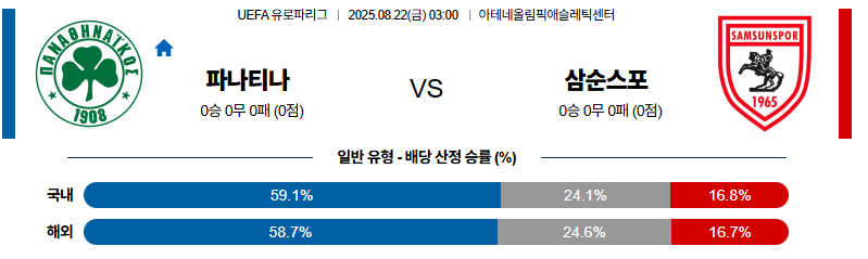 파나시나이코스 대 삼순스포르 UEFA유로파리그 08월22일 맞대결 생중계, 스포츠중계, 스포츠분석