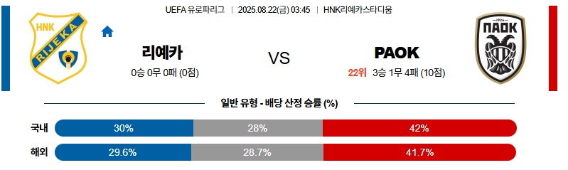 리예카 대 PAOK UEFA유로파리그 08월22일 맞대결 생중계, 스포츠중계, 스포츠분석
