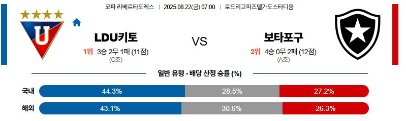 LDU키토 대 보타포구 코파리베르타도레 08월22일 맞대결 생중계, 스포츠중계, 스포츠분석