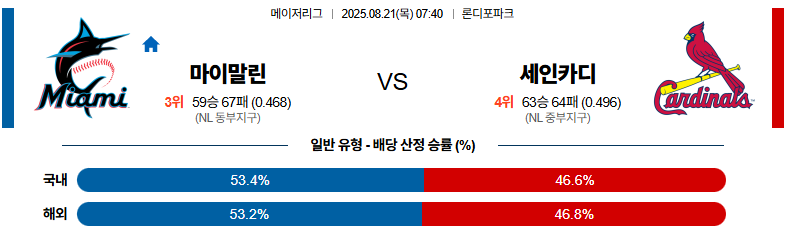 마이애미 대 세인트루이스 MLB 08월21일 맞대결 생중계, 스포츠중계, 스포츠분석