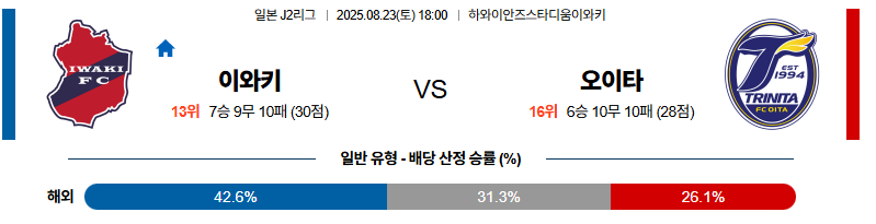 이와키 대 오이타 J리그2 08월23일 맞대결 생중계, 스포츠중계, 스포츠분석