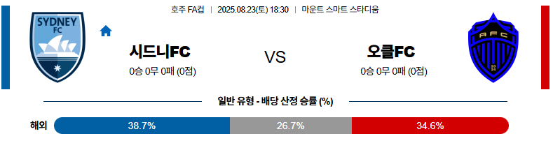 시드니FC 대 오클랜드FC 호주FFA 08월23일 맞대결 생중계, 스포츠중계, 스포츠분석