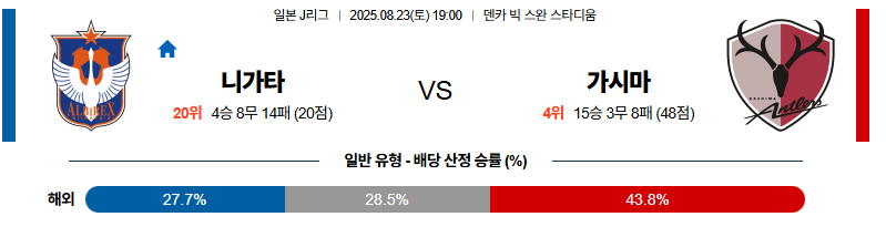 알비렉스니가타 대 가시마 J리그1 08월23일 맞대결 생중계, 스포츠중계, 스포츠분석