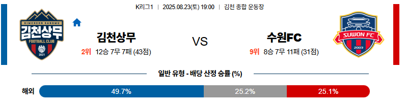 김천 대 수원FC K리그1 08월23일 맞대결 생중계, 스포츠중계, 스포츠분석