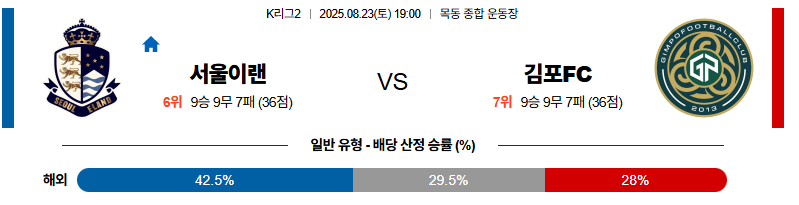 서울이랜드 대 김포 K리그2 08월23일 맞대결 생중계, 스포츠중계, 스포츠분석