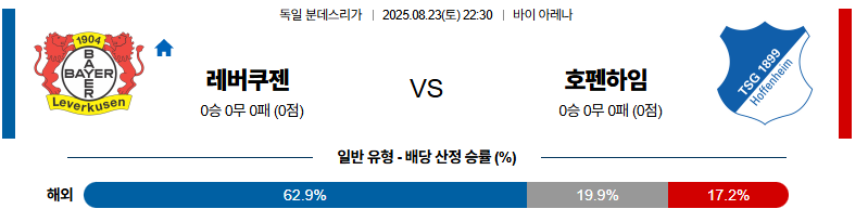 레버쿠젠 대 호펜하임 분데스리가 08월23일 맞대결 생중계, 스포츠중계, 스포츠분석