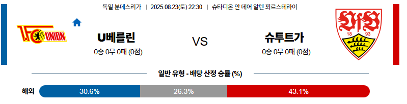 우니온베를린 대 슈투트가르트 분데스리가 08월23일 맞대결 생중계, 스포츠중계, 스포츠분석