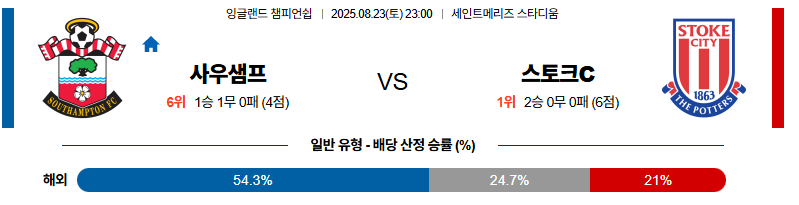 사우스햄튼 대 스토크시티 잉글랜드챔피언쉽 08월23일 맞대결 생중계, 스포츠중계, 스포츠분석