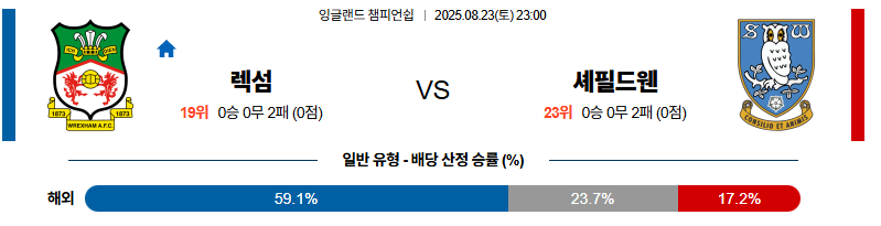 렉섬 대 셰필드웬즈데이 잉글랜드챔피언쉽 08월23일 맞대결 생중계, 스포츠중계, 스포츠분석