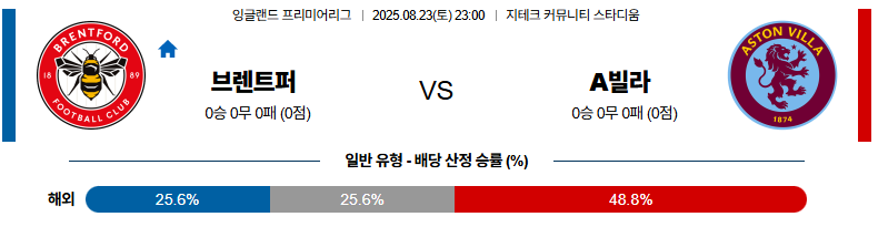 브렌트퍼드 대 아스톤빌라 프리미어리그 08월23일 맞대결 생중계, 스포츠중계, 스포츠분석