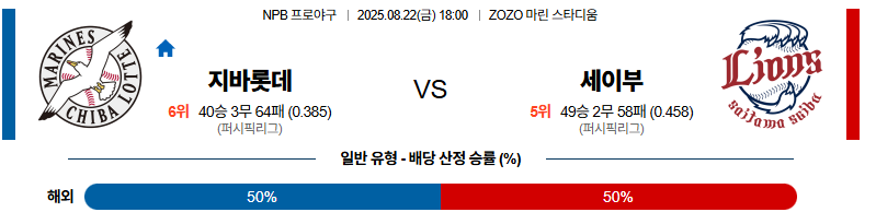 지바롯데 대 세이부 NPB 08월22일 맞대결 생중계, 스포츠중계, 스포츠분석