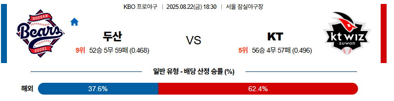 두산 대 KT KBO 08월22일 맞대결 생중계, 스포츠중계, 스포츠분석